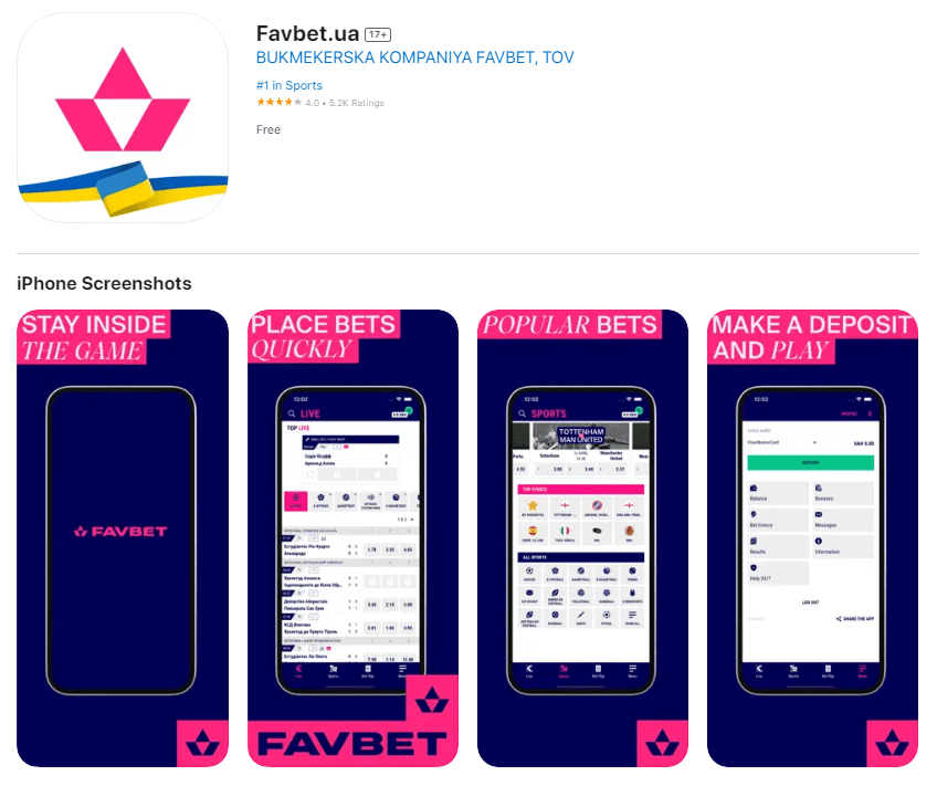 Букмекерська контора Фавбет має у своєму розпорядженні додаток для пристроїв на iOS. Користувачі iPhone та IPad можуть знайти його у App Store.